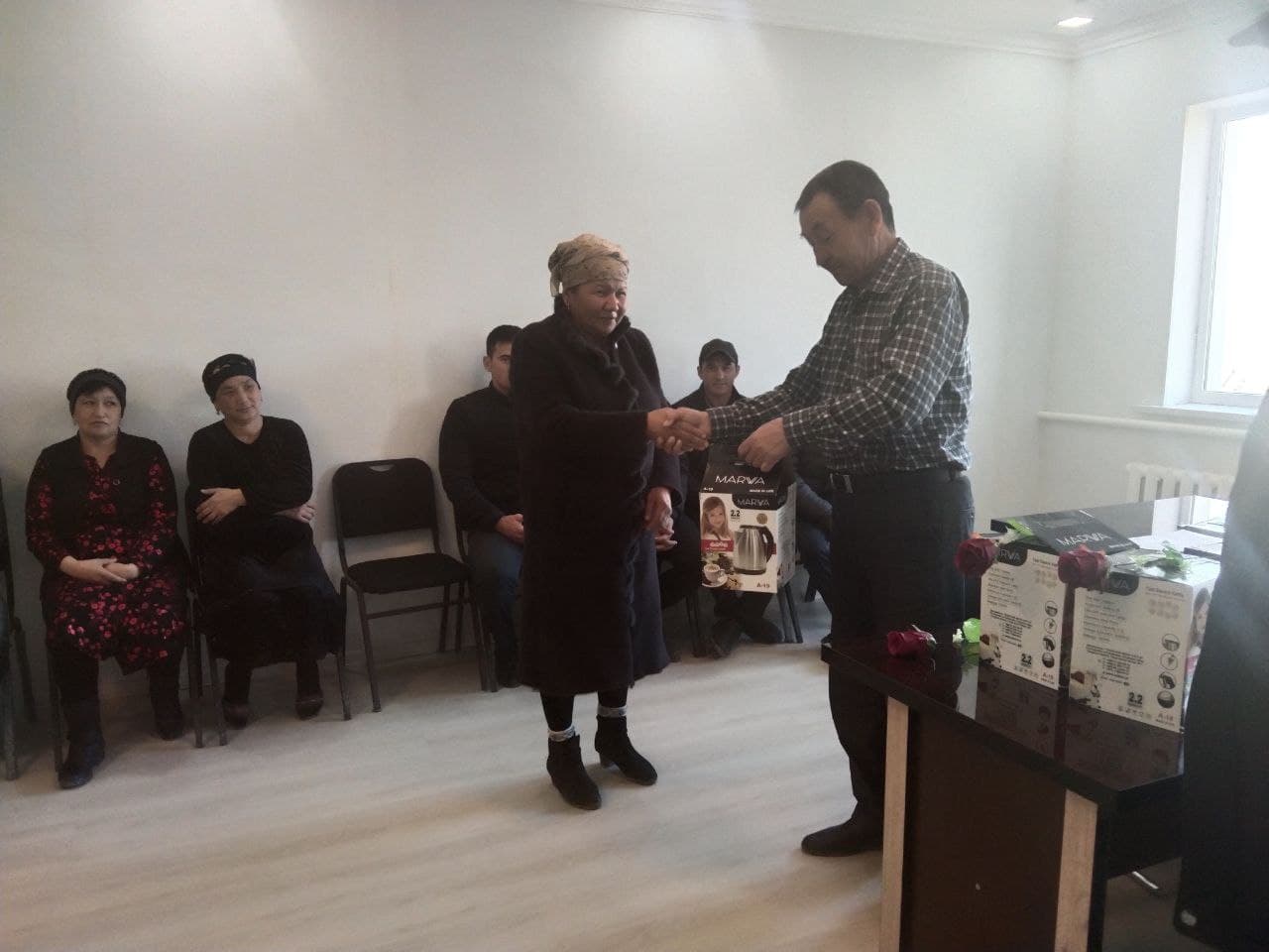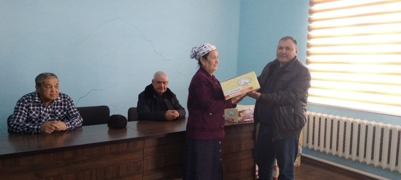 Шуманай тумани ирригайия бўлими раҳбари М.Жиемуратов ташкилотнинг касаба уюшмаси томонидан тайёрланган совғаларни ҳотин-қизларга топширди.