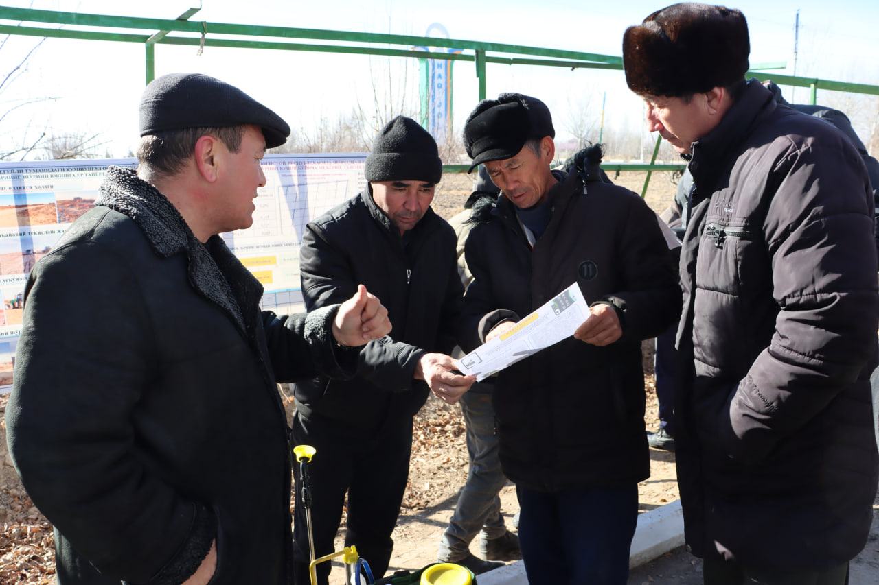 ___ Бугун туманимизда ўтказилган семинарда шўр ювишга тайёргарлик ишларини яна бир бор танқидий кўриб чиқиб, барча сув истеъмолчиларга шўр ювишга сув олиш учун ерларни талаб даражасида тайёрлаш бўйича кўрсатмаларни олдик. Ҳақиқатан ҳам жорий қиш фаслида ҳаво-ҳароратининг кескин совиқ бўлиши сабабли шўр ювишга тайёрланган майдонларда талаб даражасида текисланмай ёки, пол олинмай қолган далалар бор. Мана ҳарорат ҳам кўтарилиб, далаларга техника кириб ишлаш иконияти туғилмоқда. Биз тез кунларда қолган майдонларда ҳам шўр ювишга сифатли тайёрлашнинг барча чораларини кўрамиз.