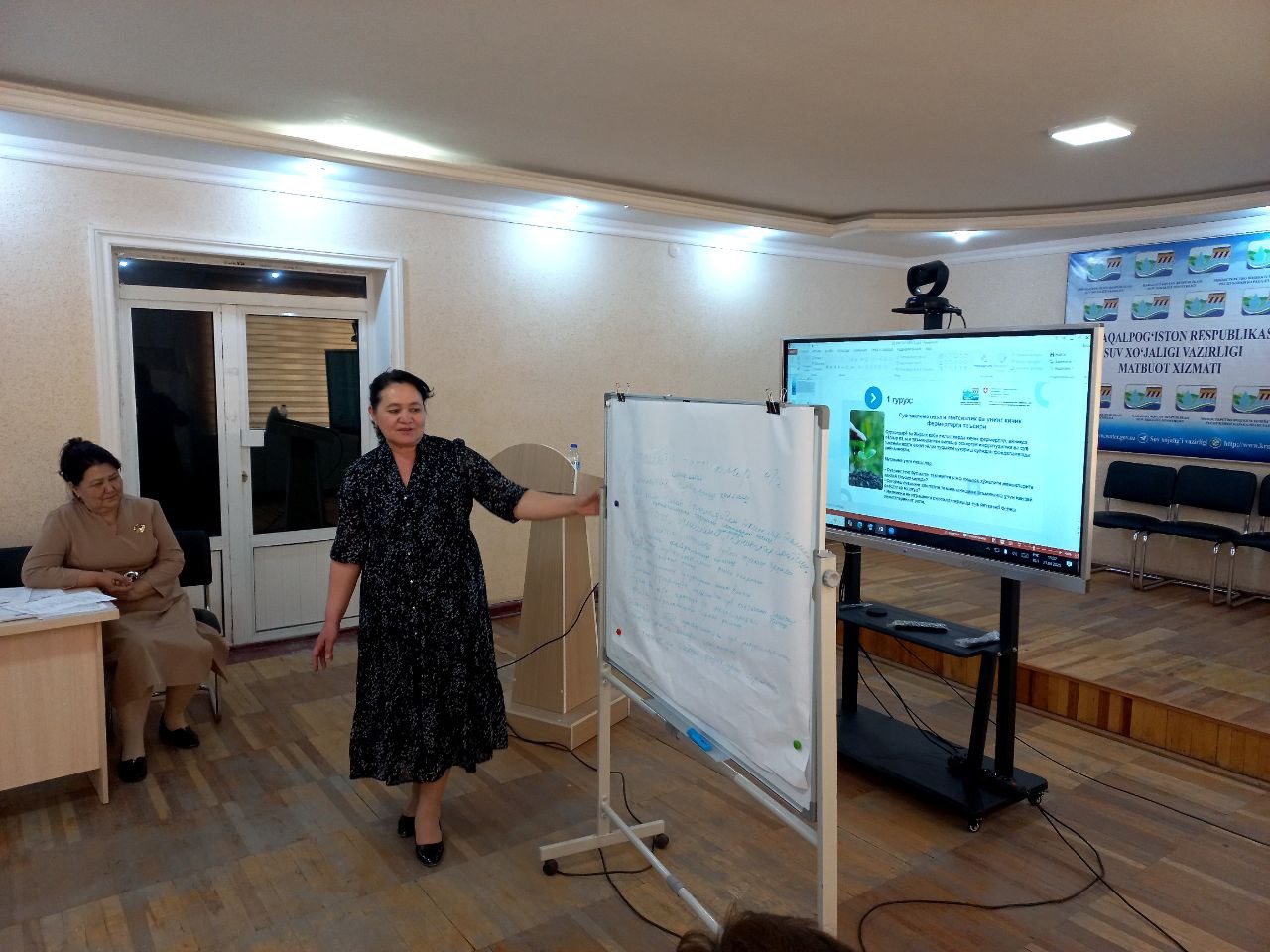ZOOM платформаси орқали марказий студия билан мулоқот ўрнатилган ўқув-тренинг курсида Қорақалпоғистондаги сув хўжалиги ташкилотларида ишловчи хотин-қизлар ҳамда фермер аёллар ҳам фаол иштирок қилдилар.