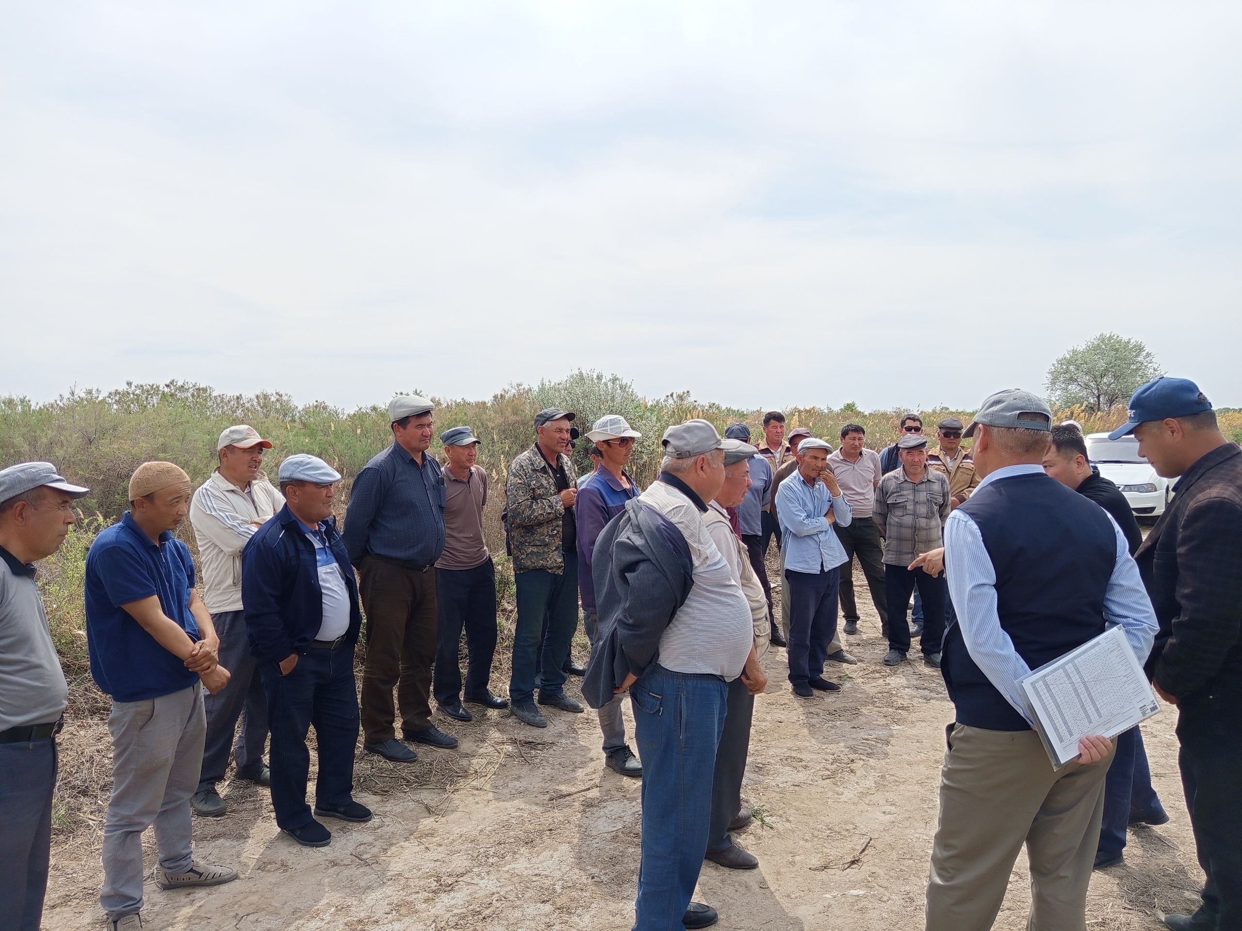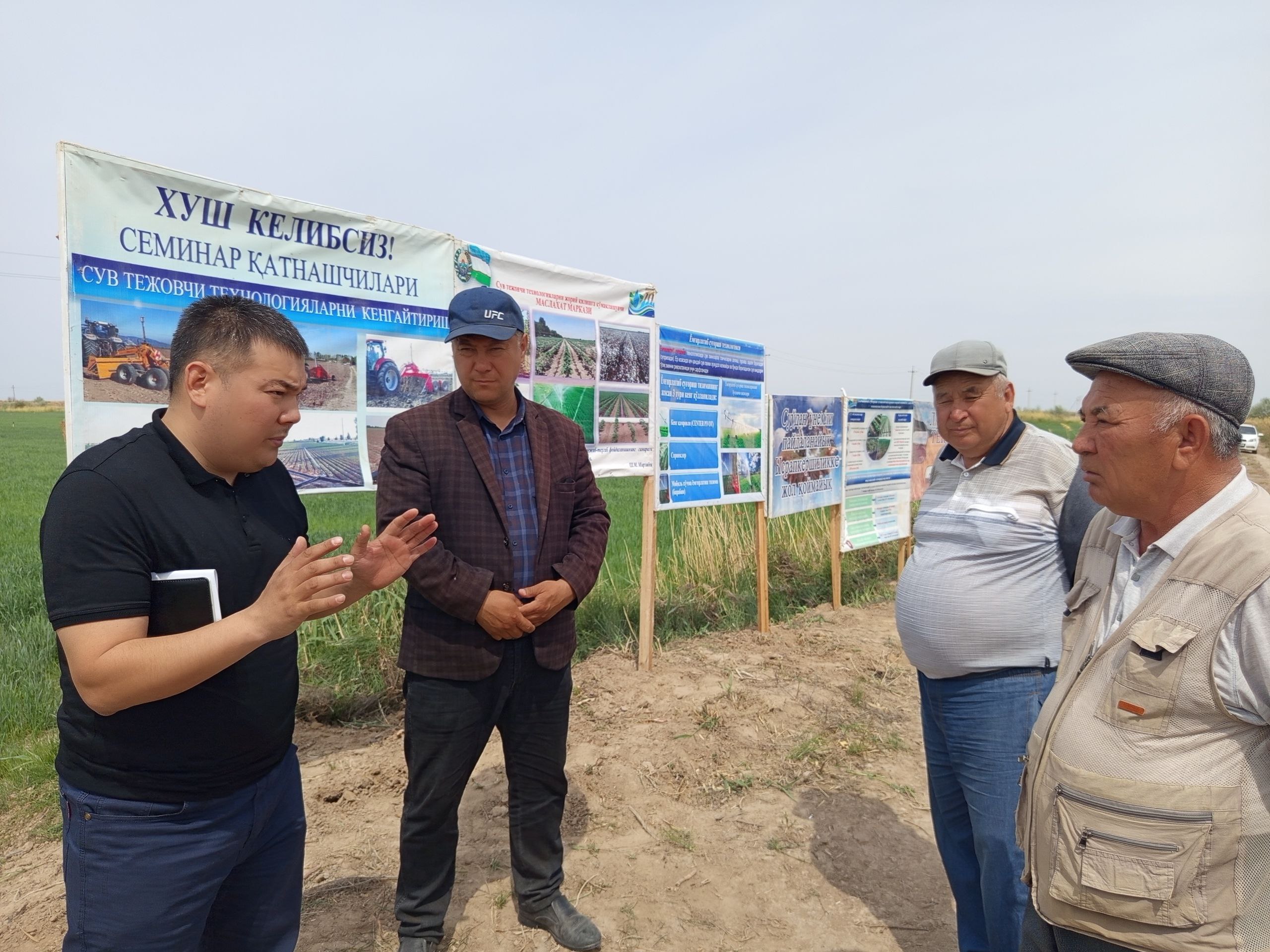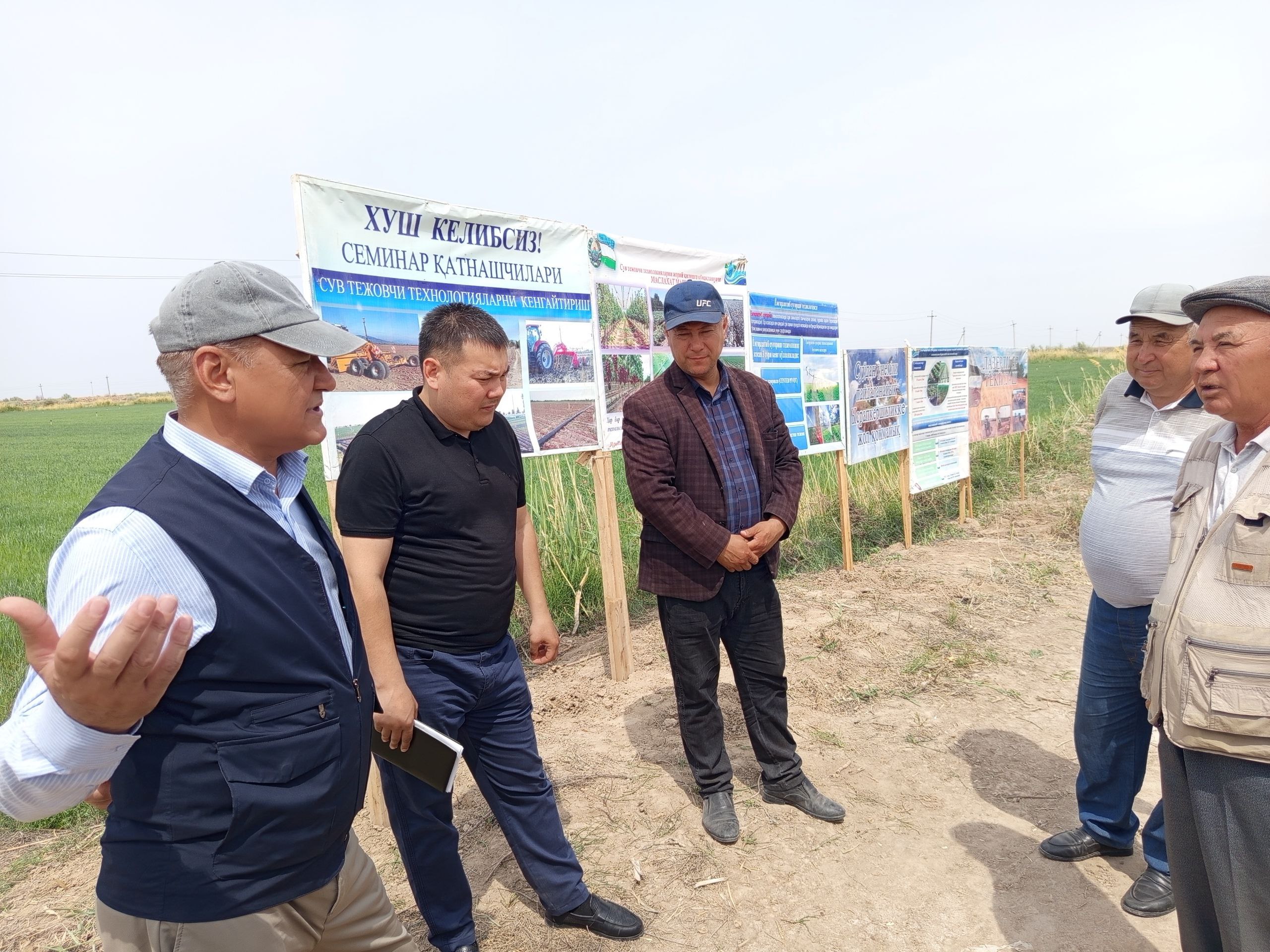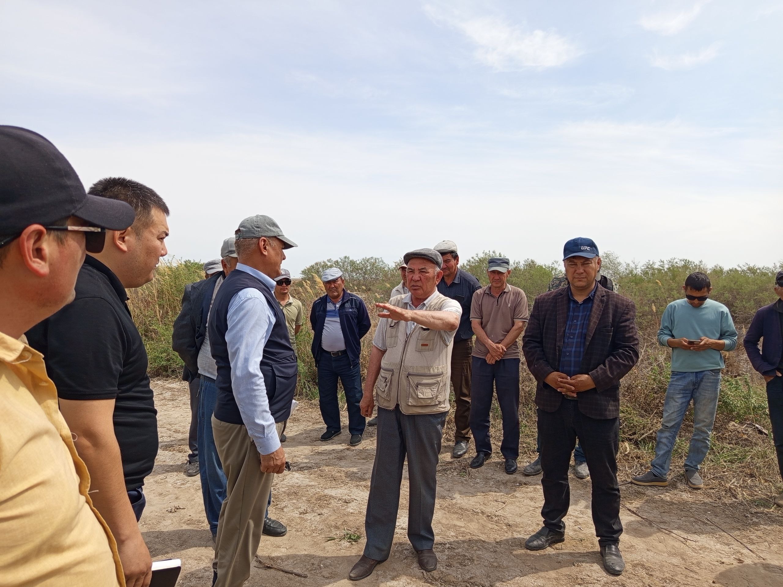 Тумандаги “Рейимқул Бердалы” фермер хўжалигининг даласида ўтказилган тадбирда сувни тежайдиган суғориш технологияларини жорий этиш, сув истеъмолчиларига ажратилган сув лимитлари доирасида шартномалар тузиш каби масалалар муҳокама этилди.