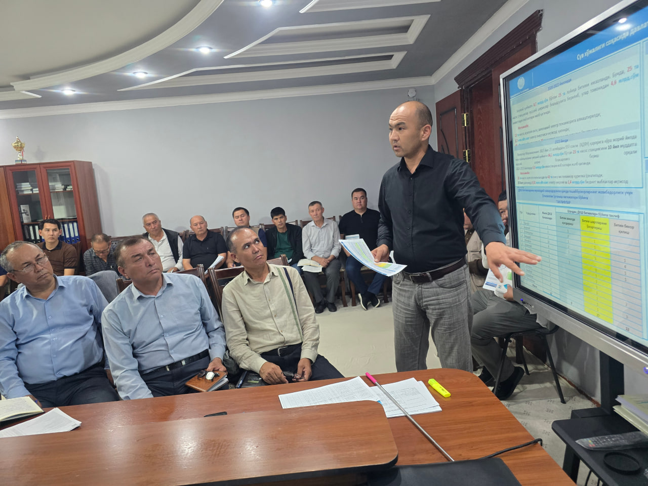 Ўзбекистон Республикаси Сув хўжалиги вазирлигининг бошқарма бошлиғи, Қорақалпоғистон Республикаси Сув хўжалиги вазирининг ўринбосарлари, бўлим ва сектор раҳбарлари тегишли йўналишлар бўйича тақдимотлар қилишди.