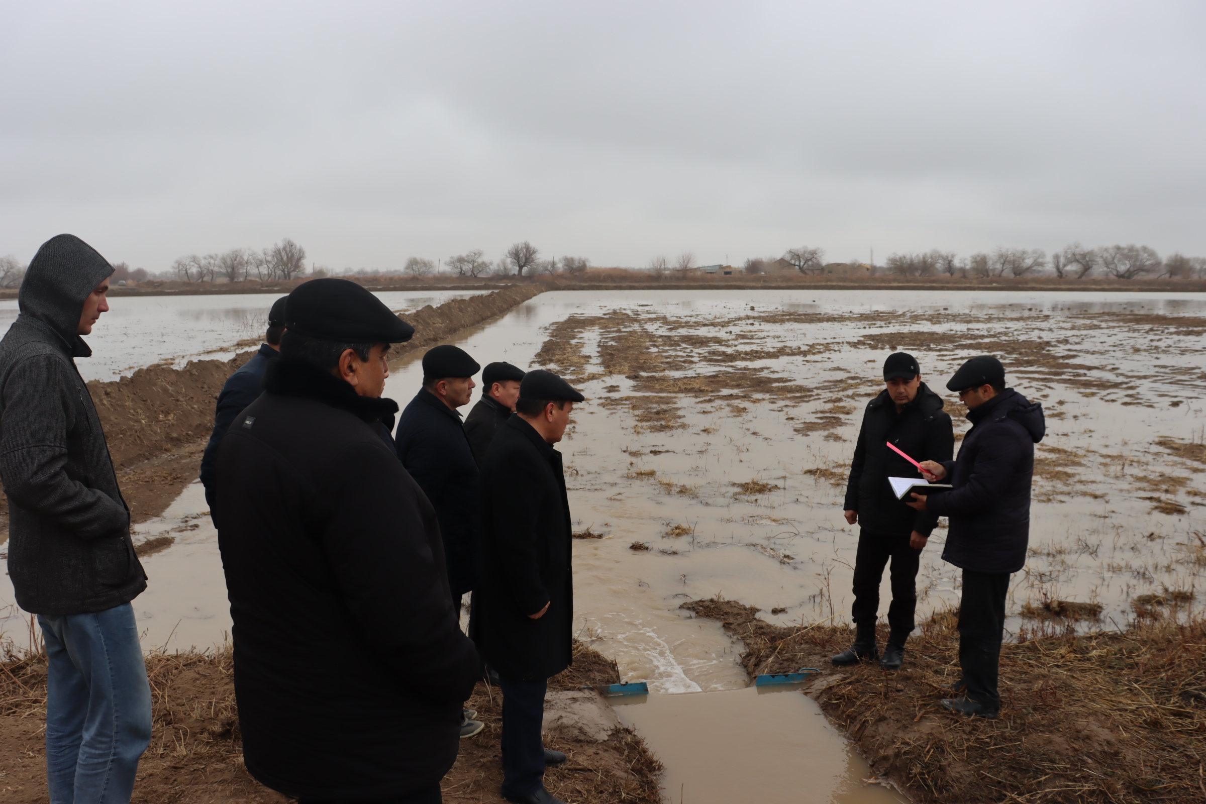 Ҳәзирги ўақытта орынларда Өзбекстан Республикасы Суў хожалығы министрлигиниң Ирригация ҳәм суў машқалалары илимий-изертлеў институты ҳәм оның Қарақалпақстан аймақлық орайы илимпазлары тәрепинен шор жуўыўға жумсалып атырған суўлардың муғдарын өлшеў бойынша тәжирийбе өткерилмекте. Өзбекстан Республикасы Суў хожалығы министриниң орынбасары Р.Қаршиев, Жерлердиң мелиоративлик жағдайын жақсылаў басқармасының баслығы Қ.Мурадов Хожели районындағы тәжирийбе өткерилип атырған атызларда болып, әмелге асырылып атырған жумыслар менен танысты. Илимпазлар, суўшылар…
